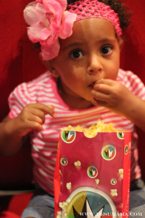 I managed to get a couple photos inside the dark theater; a true testament to my camera. Although not at all in focus, it was the best I could do. My camera was pushed to its limit in these conditions, and it was a good thing I was able to switch to manual because the camera simply did not shoot at all in auto or AV. And in order to get Alina to sit completely still for 1/6th of a second, popcorn was required. What’s a Mom to do, right?