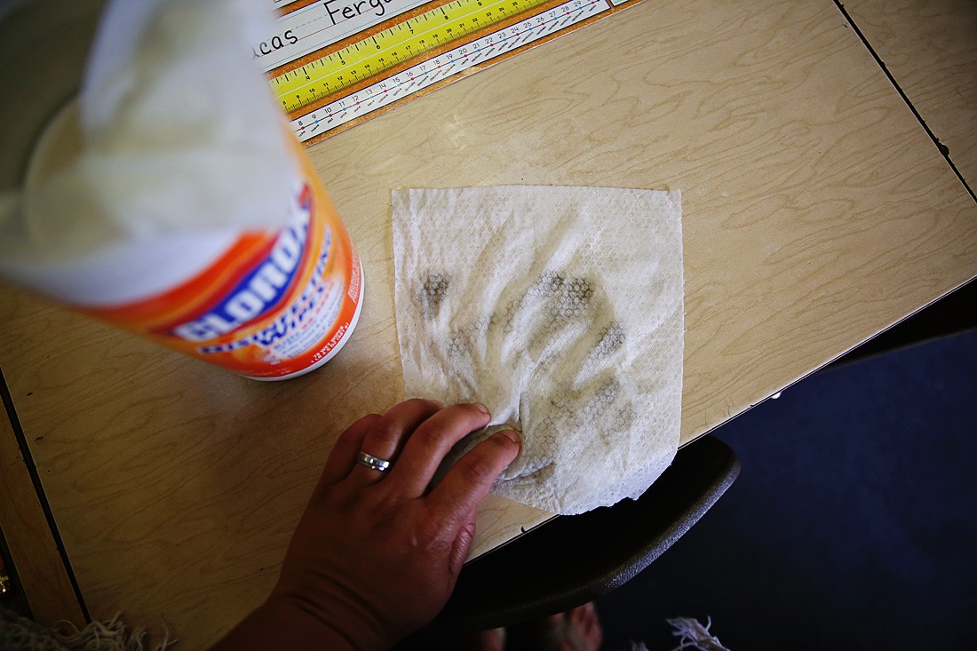 One simple way to show teachers appreciation is by completing housekeeping tasks that they would otherwise not get to during the school day. So although the classrooms are cleaned and vacuumed every day, when Alina’s teacher asked me to help out each week with a simple task, I jumped at the chance. Every Monday after school, I spend about 10 minutes using Clorox® Disinfecting Wipes to help remove germs, bacteria, and countless other nasties lurking all over the tops and corners of the kids’ desks. After playing on a black top, wiping mocos and who know what else, those desks need more than just cleaning – they NEED disinfecting!