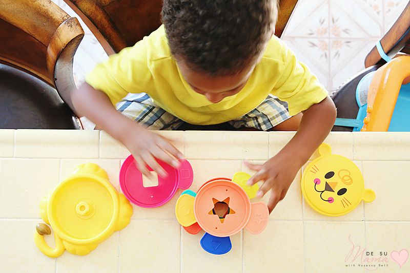 Playskool says the Stack ‘n Stow Cups are for 9 months old and up, but I think this toy have major longevity. The stacking game is one that seems to calm my active boy (even if he loves to destroy the tower after it’s been built!) and it also gives us another opportunity to reinforce his knowledge of shapes and colors. We use the cups to play sorting and counting games, too. And, like most games these days, the Stack ‘n Stow cups help facilitate recognition of all these things in Spanish, too.