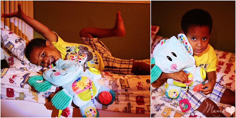 Getting my active son to bed is another struggle that I never had with my daughter. This boy doesn’t have an off switch! A toy that helps him calm down and focus on bedtime is the Fold ‘n Go Busy Elephant. Before we got him this plush elephant, it was difficult for him to sit through our bedtime books. Since it has 7 activities in 1 adorable, plush elephant, he’s able to keep his fingers busy while he listens to me read. I’ve had to learn to ignore a bit of his activity, but if he has the freedom to cuddle and play with the small trinkets on his elephant, we’re able to enjoy our reading just fine.