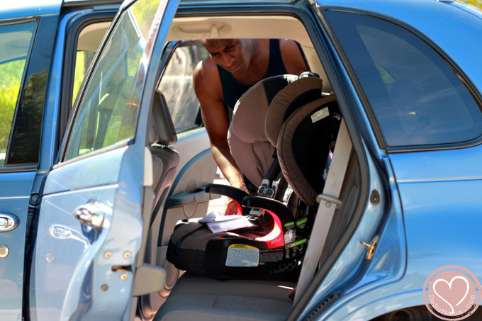 Daddy D couldn’t believe how easy it was to install, remove and install again – that whole process took less than 5 minutes. You just have to squeeze the buttons inside the base, lift the seat up, slide the seat belt through the slots, and close. That’s it! (Don’t forget to use the anchors if your car is equipped with them).