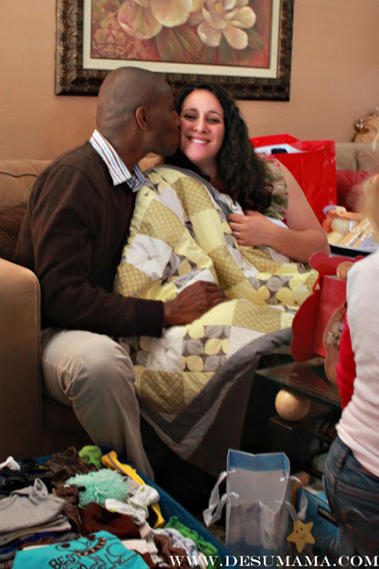 But they wanted to celebrate our new boy, so a compromise was made: a low key pot luck at Grammy’s for family to enjoy. Just come and eat. No games or other craziness. Truth be told, when I woke up on my non-baby shower day, I was SUPER excited!! And ultimately, very spoiled. Our Son received so many heartfelt gifts, including handmade blankets, a custom made mobile and even a few accessories for an outfit I recently blogged about…
