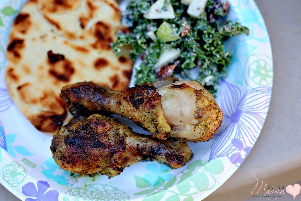 Our delicious chicken sharwma recipe was served with a side of naan bread and a kale salad. It was the perfect meal after a long day of swimming and spending time with friends.