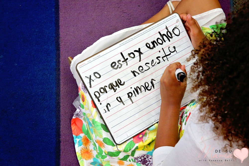 In the photo above, my little girl is journaling in Spanish for kindergarten – like she did every morning this school year. She writes, “Yo estoy enojado porque necesita ir a primer grado.” Translated, she’s not thrilled about Kindergarten ending and having to transition to a new grade with a new teacher and friends. No one told her what to write… she just sat down and wrote what was in her heart. In Spanish.