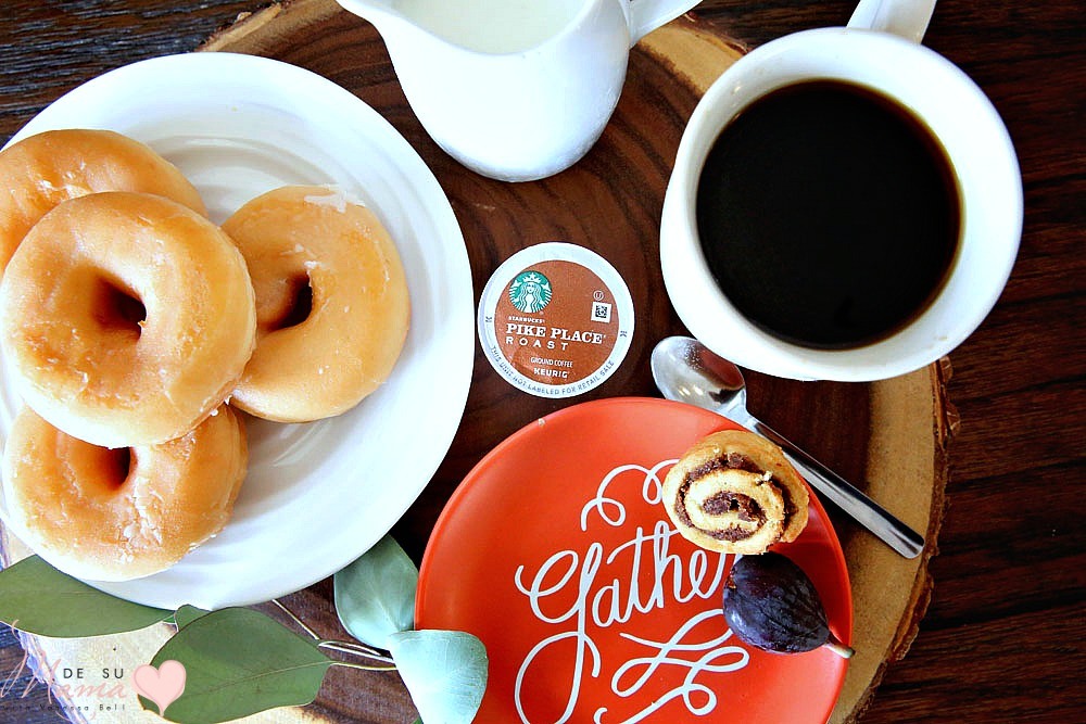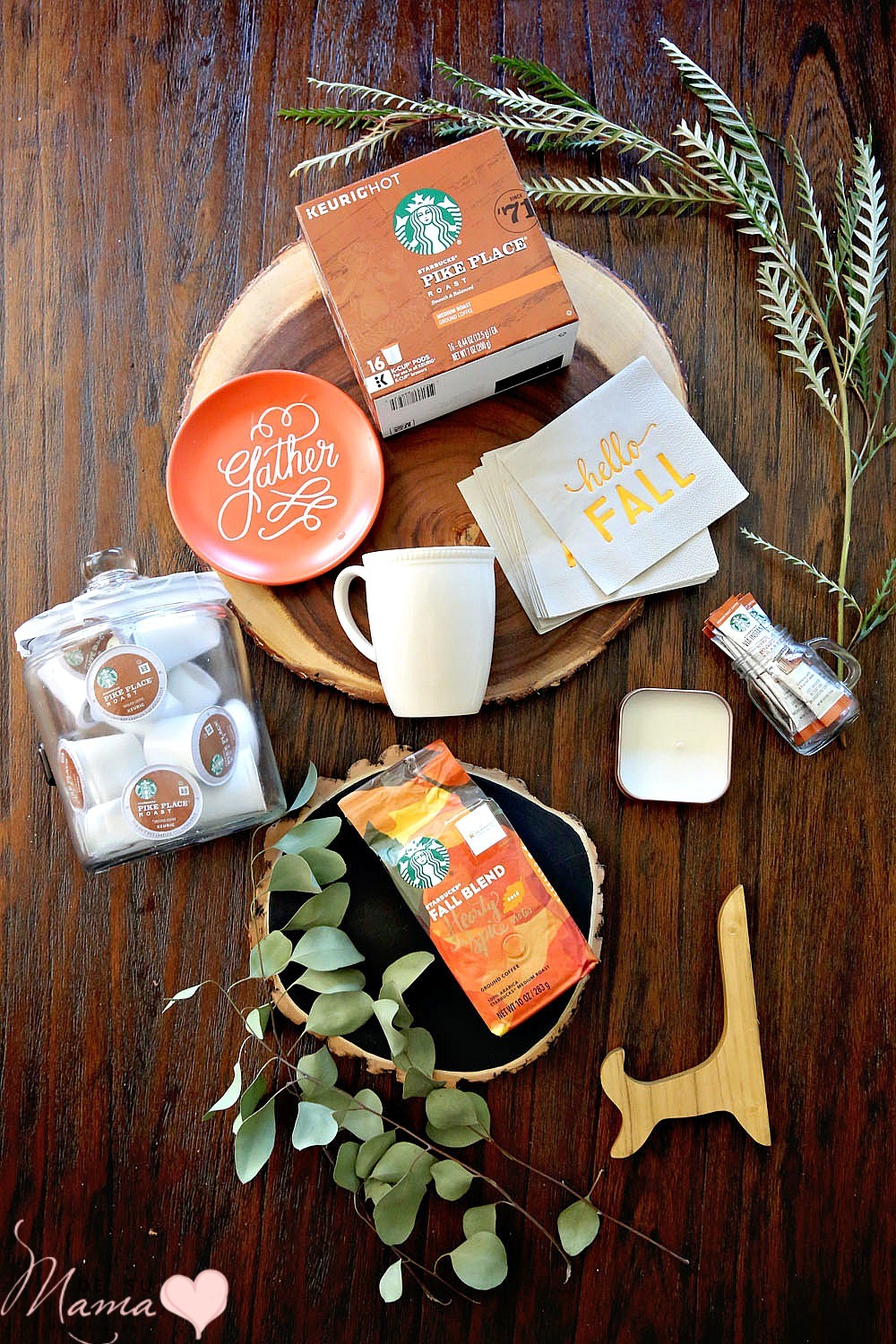 I love my Keurig and so do my mom friends! They know that, no matter the occasion, I usually have several varieties of k cup to choose from. For this coffee bar, I bought my regular favorite Starbucks Pike Place, Starbucks French Roast and, of course, the seasonal favorite of Starbucks Pumpkin Spice Latte.