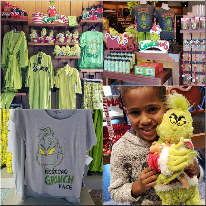 While the kids waited in line to meet and take a picture with The Grinch, I browsed through some of the adorable Grinchmas merchandise you can find throughout Universal Studios Hollywood Christmas celebrations. Why do we all love The Grinch so much?! Some of my favorite, tongue-in-cheek merchandise had these saying…
