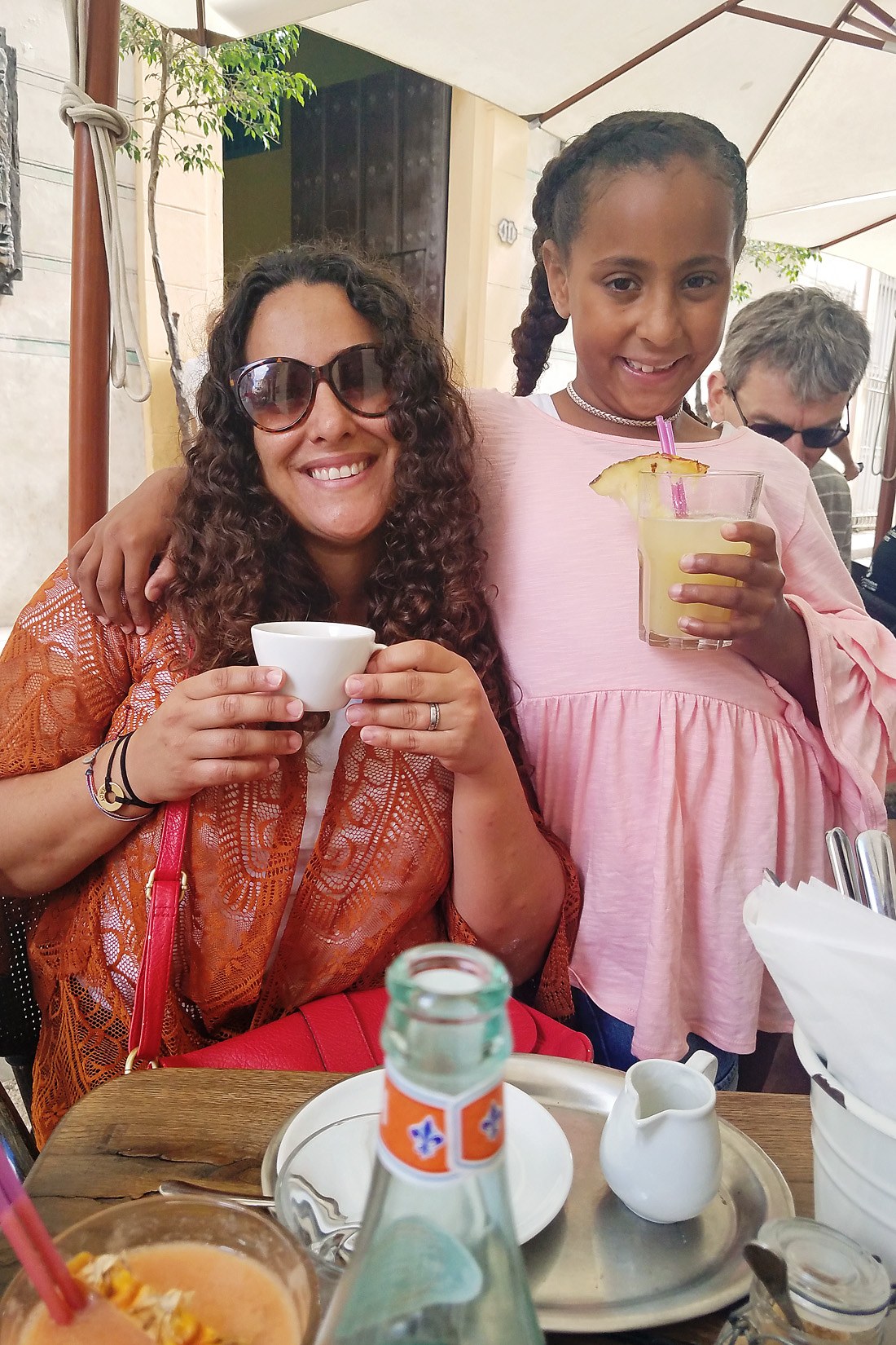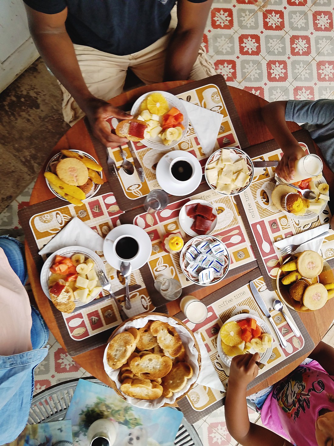 mixed family in cuba having cuban breakfast