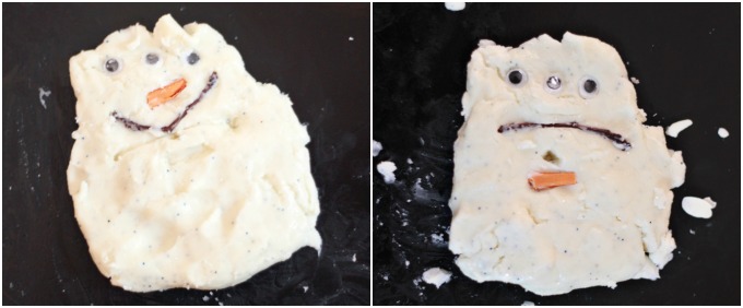 - Emotive: Make a Snow Dough Man and ask your child to show you how the snowman would look if he were sad, happy, etc.