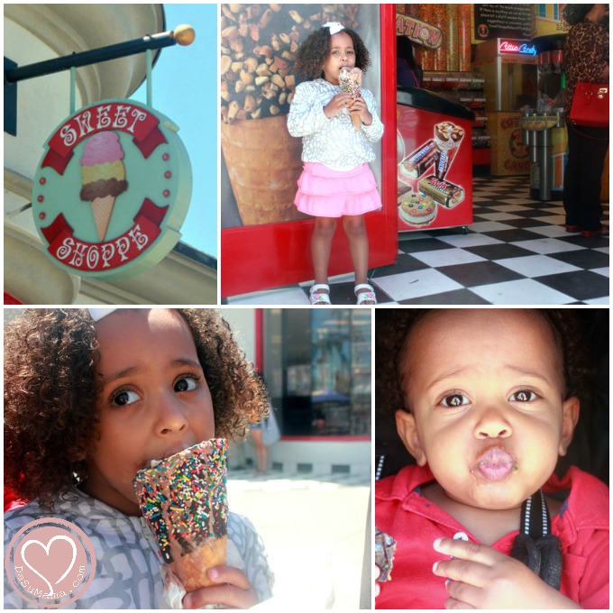 While I love Mission Beach for all those reasons, what makes this area extra special is Belmont Park. Situated right next to the beach’s strand, this little area of restaurants and shops reminds me of a smaller version of Santa Monica Pier. It has so many fun things for kids to do. We went down there a few times during our stay, and each time the kids had so much fun. We went on the vintage carrousel countless times and one day we even indulged with an ice cream cone from Sweet Shoppe the size of a child’s head!