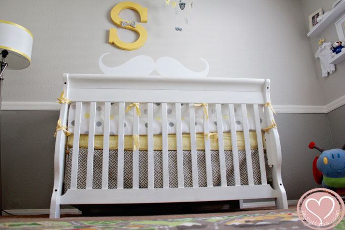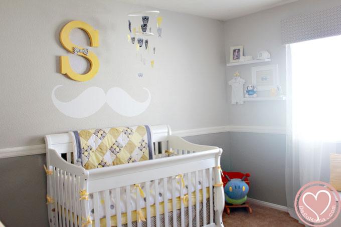 Overall, I am happy with my gentleman’s mustache, bow tie nursery of grey and yellow. And while its light color scheme fits an infant perfectly, the basics of the room will transition easily to the more vibrant primary color scheme I plan to use for his “big boy room” in a couple years.