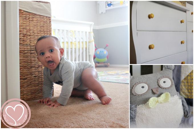 So much love and attention went into this room. If you remember, we had moved into our home only months before my delivery date. Sebastian’s room was mostly complete before he was born, but the finishing touches were added only recently. The crib and dresser were Alina’s old furniture, so we didn’t have t purchase anything major. And although I thought we would for a sure cough up the dough for a new rocker, the old one is working just fine. Actually, Sebas is nowhere near the rocker that Alina was, so it hardly gets used. There are also many DIY decorations, and I’m excited to share those projects with you. In general, I love Sebastian’s room! It may actually be my favorite room in the house (until we finish Alina’s room!).