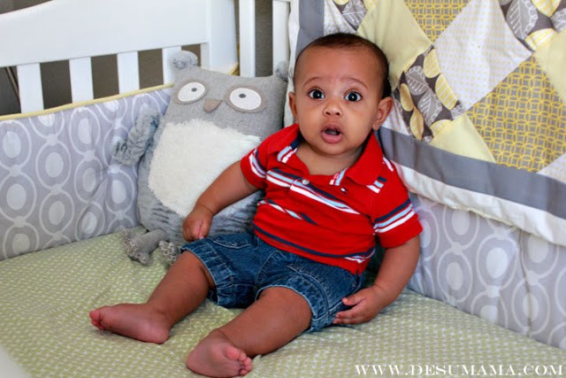 My sweet mixed babies started packing on the pounds at 5 months. This chunk of love here weighed in at a whopping 19 pounds (90th%) and 26.25 inches long (80th) as a 5 month old. I estimate another month or so before we have to switch your car seat. He wears 6-9 month clothing, mostly because I refuse to go any higher! He can certainly pull off 9 or 12 month sizes. He wears a size three diapers.