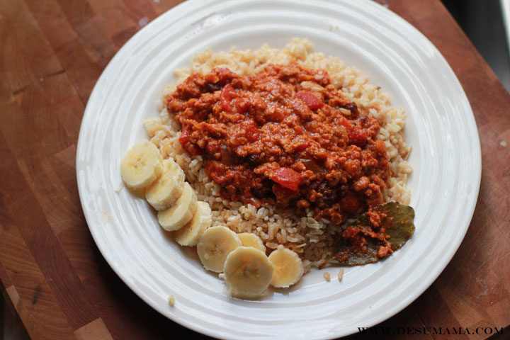 Picadillo is a Cuban Recipe classic. The ground meat hash is a meal many Cuban families eat on a regular basis, including mine. It is usually served over rice {brown, in my family’s case} with a side of fried bananas {another Cuban specialty}. However, I grew up eating much of my Cuban dinners with a fresh, sliced banana and that is how we enjoyed our picadillo last night. My recipe is made with ground turkey, instead of the traditional ground beef, and without pimentos {stuffed olives} since I can’t like olives to save my life {trust me, I’ve tried!}. But the heart and soul of my Americanized picadillo version still beats the same as its Cuban counterpart, promising a wealth of tomato and garlic, as well as a hefty kick of flavor. I hope you give this recipe {and some Hispanic Food products} a try! Enjoy!