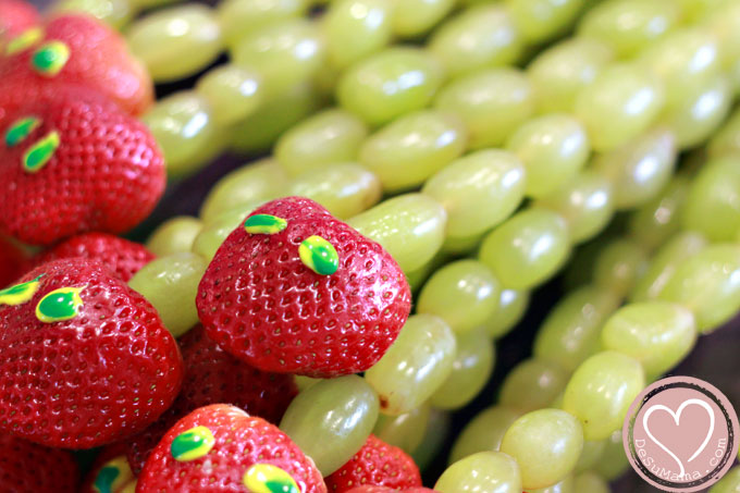 I kept it simple with the food by ordering sandwiches from our favorite sub shop. I made a few salads and put out some fruit to round out our lunch. The pesto pasta salad was a hit, and the kids got a kick out of the caterpillar grape skewers. I’m pretty sure nobody noticed, but I punched holes through all the pieces of watermelon… you know, because the caterpillar ate through them 🙂